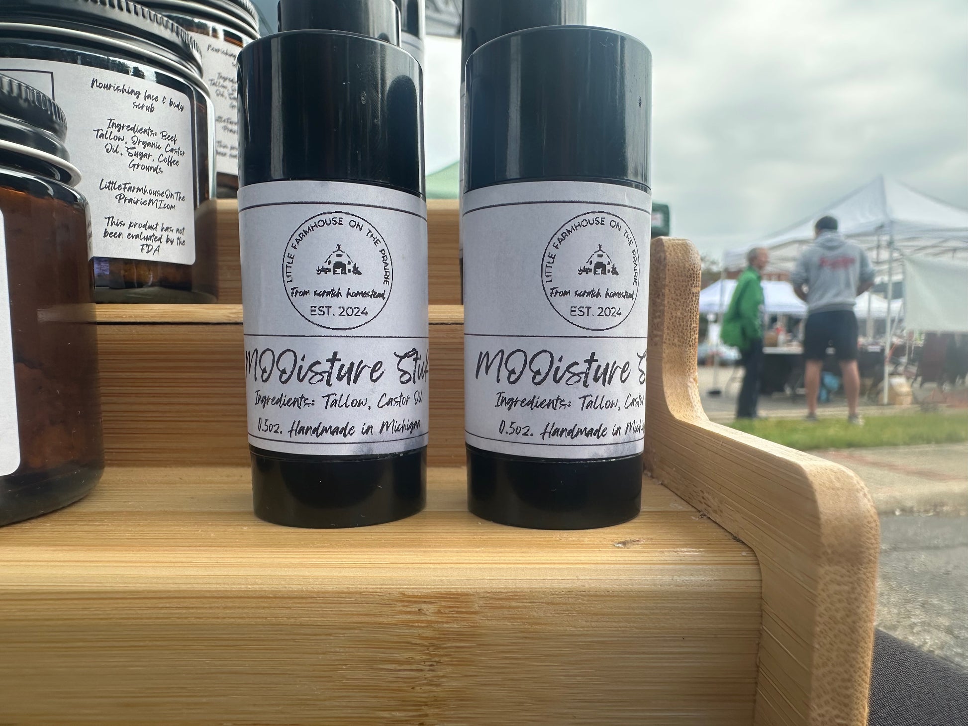 Say goodbye to dry, flaky skin—anytime, anywhere. Our Mooisture Stick is a convenient, mess-free balm made with nutrient-rich tallow and castor oil to deeply hydrate, soothe, and protect even the driest skin. Just glide and go.